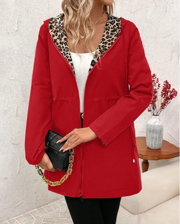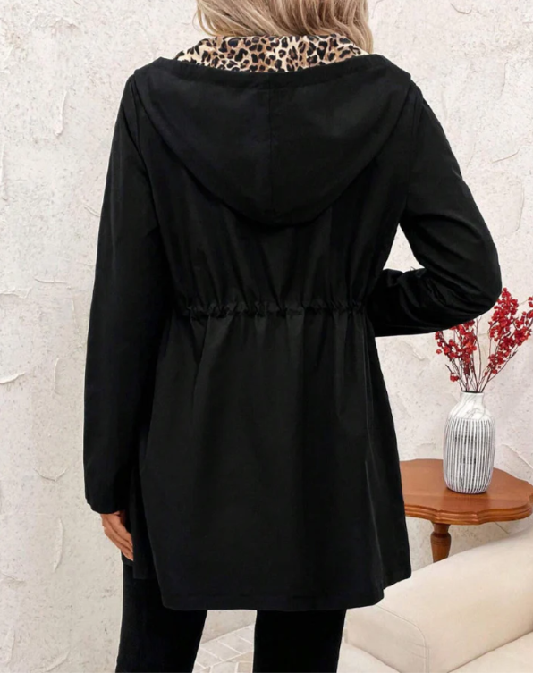 Step into effortless style with the Valentina Reversible Hooded Coat with Leopard Print — a versatile statement piece that seamlessly blends comfort, function and fashion. This coat is crafted from a soft cotton-blend fabric that feels lightweight yet cozy, making it the perfect transitional layer for spring, autumn or mild winter days.