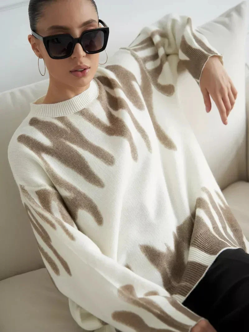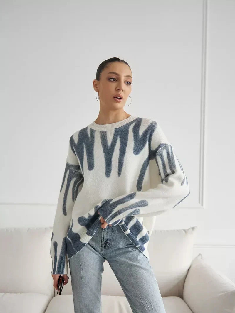 Refresh your wardrobe with this abstract print sweater, ideal for modern minimalists and artistic spirits alike. Perfect for casual outings or cozy afternoons at home, its versatile charm and unique design are sure to make it a favorite. Add this elegant piece to your collection today!